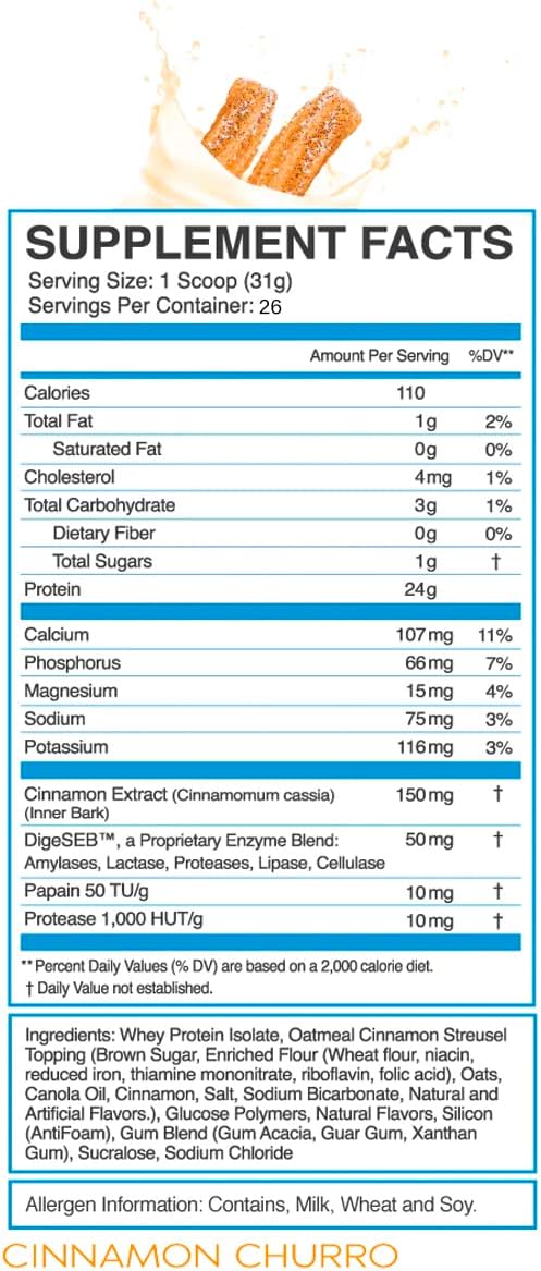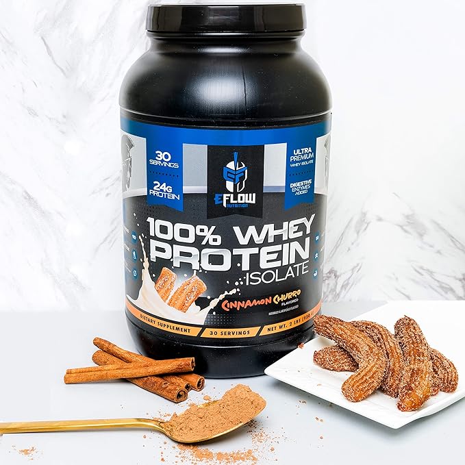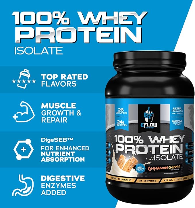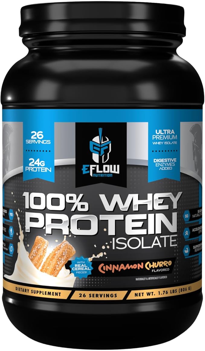 eFlow Nutrition 100% Whey Protein Isolate - Lactose-Free Digestive Enzymes Added, Low Carb, Post Workout Shake, Fast Digesting for Optimal Muscle Recovery - Cinnamon Churro (26 Servings)