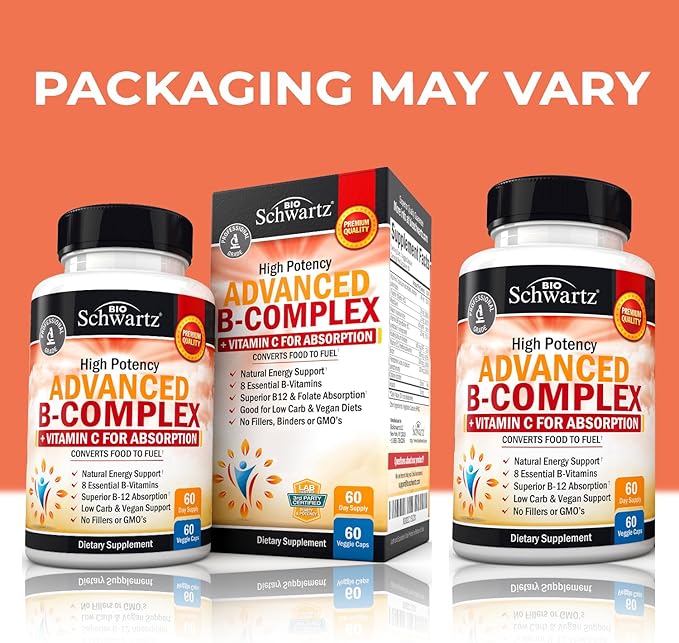 - Includes all B vitamins: BioSchwartz advanced B complex includes vitamins B1, B2, B3, B5, B6, B7, B9, B12, plus folic acid & vitamin C to support healthy natural energy levels and heightened cognitive performance