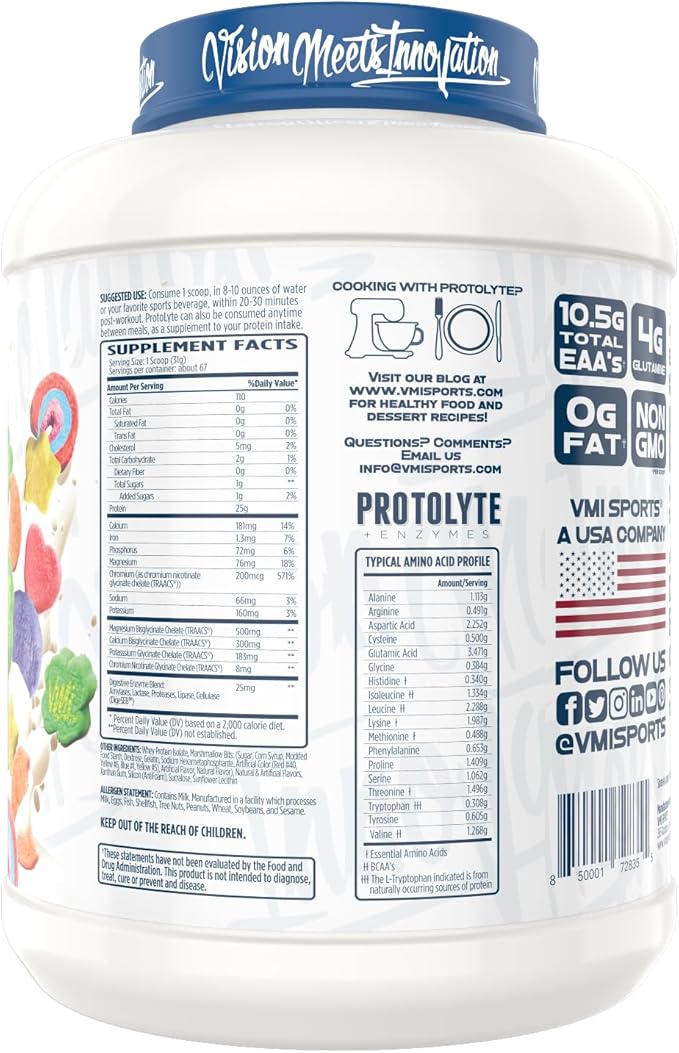 VMI Sports | ProtoLyte Whey Isolate Protein Powder | Low Calorie Whey Protein Powder for Weight Loss | Protein Powder for Muscle Gain | Digestive Enzymes | Non-GMO (Marshmallow Charms, 4.6 Pounds)