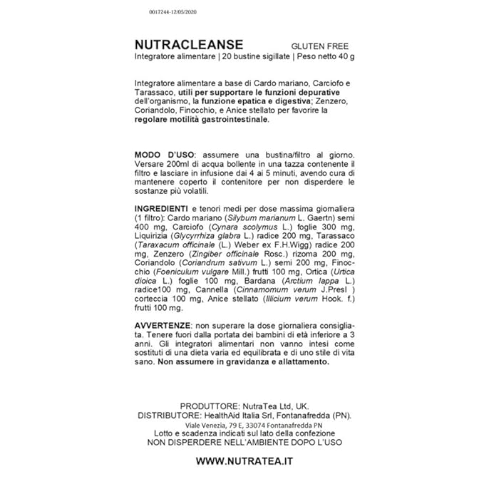 NUTRACLEANSE - Detox Tea | Colon Cleanse Tea | Constipation Tea - Full Body Detox Cleanse – Includes Dandelion Root, Milk Thistle and Burdock Root - 20 Enveloped Tea Bags - by Nutra Tea - Herbal Tea