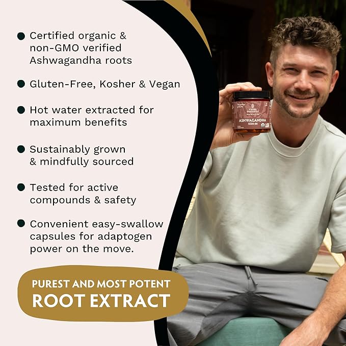 - THE PRINCE OF HERBS: Our premium organic KSM-66 vegan ashwagandha supplement enhances sleep quality, promotes enhanced recovery, cultivates a profound sense of calm, boosts energy levels, and uplifts mood. Our supplement aids in sharpening focus and memory, fortifying the immune system, facilitating relaxation, and curbing food cravings. It is suitable for individuals of all ages, from kids to young adults, teenagers, and children. Ashwagandha has demonstrated no toxic effects