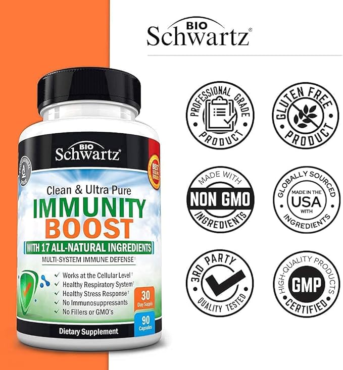 - Ingredient standards: BioSchwartz immunity boost capsules were expertly formulated with high quality ingredients to support a healthy immune system, so you can feel confident knowing you're getting a quality dietary supplement to keep you feeling your best year-round