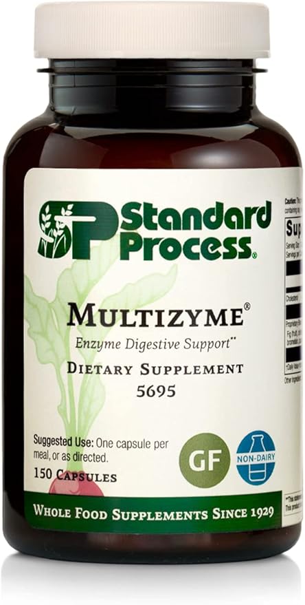 Standard Process Multizyme - Whole Food Pancreas Support, Pancreatin Digestive Enzymes, Digestive Health and Pancreatic Enzymes with Cellulase, Papain, Amylase, Lipase and More - 150 Capsules