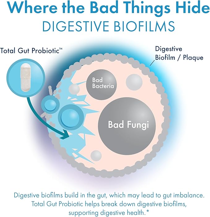 - GOOD BACTERIA + GOOD FUNGI + DIGESTIVE ENZYMES = TOTAL GUT BALANCE - BIOHM Total Probiotic is the only daily probiotic designed to combine good bacteria and good fungi with a powerful enzyme to break down digestive plaque, Support Healthy Candida Levels, and help support stool regularity, and address total gut balance.