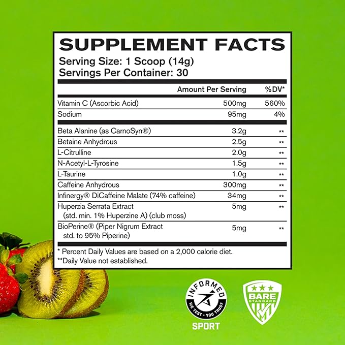 - Special Ingredients : Infinergy (di-caffeine malate), Betaine Anhydrous, N-Acetyl Tyrosine