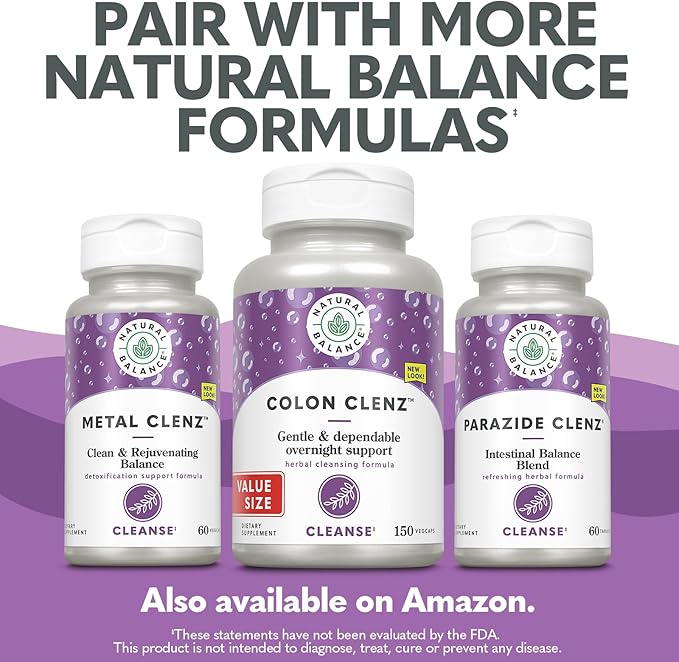 Natural Balance Colon Clenz | Herbal Colon Cleanse & Detox Supplement | Gentle & Dependable Overnight Formula (150 CT)