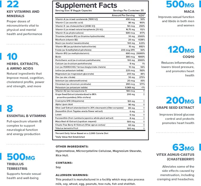 - HELPS OPTIMIZE YOUR HEALTH, PERFORMANCE, & WELL-BEING. Triumph multivitamins contain 21 vitamins and minerals and 14 herbs, amino acids, plant extracts, and other substances that supports a healthier, stronger body and mind.