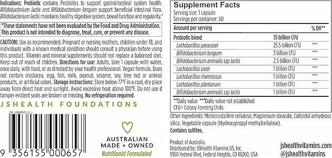 JSHealth Vitamins Gut Health and Immunity Formula | Probiotics for Women and Men | Shelf Stable Probiotic Supplement for Digestive Health and Immune Support (60)
