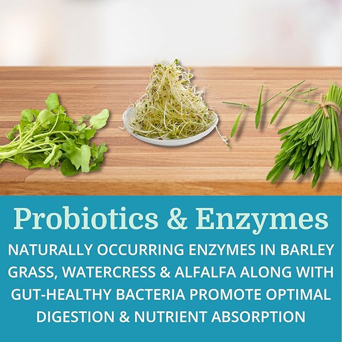 - Nutrient Absorption — Barley Grass & Alfalfa are superfoods rich in vitamins, minerals, amino acids, and digestive enzymes. Bile Salts & Pancreas Concentrate support the breakdown of proteins, fats and carbs.