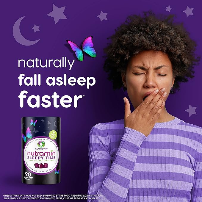 Nutramin Sleepy Time Gummy: The Vegan, Sugar-Free, Natural Melatonin 5mg for Longer Deeper Sleep - No Next-Day Grogginess, Non-Habit Forming Delicious & Drug-Free Allergy-Safe Herbal Sleep Gummies
