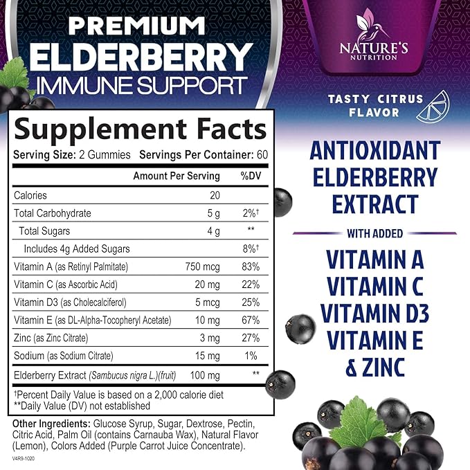 - Immune Support Complex: Nature's Nutrition Immune Support Gummies are easy, convenient, and delicious nutritional powerhouses packed full of Elderberry and Zinc; essential compounds for daily immune system support