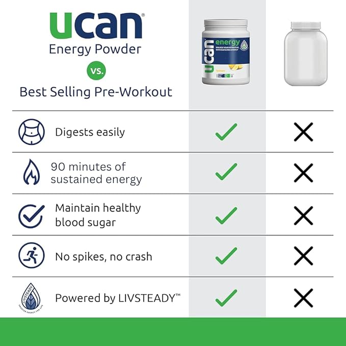 - PREFERRED BY PROS: Expert trainers, dietitians, & professional athletes at every level trust. UCAN's powered by LIVSTEADY, a plant-based energy, that helps deliver consistent, long-lasting energy for daily use or athletic performance.