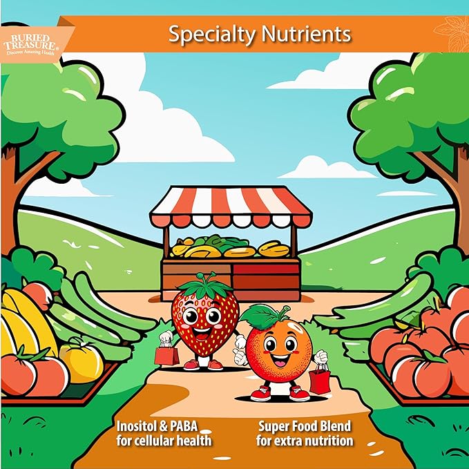 - Zero Sugar: Buried Treasure Children's Daily Multi has zero sugar, and is gluten-free, providing additional health benefits and supporting your child's overall well-being with healthy ingredients