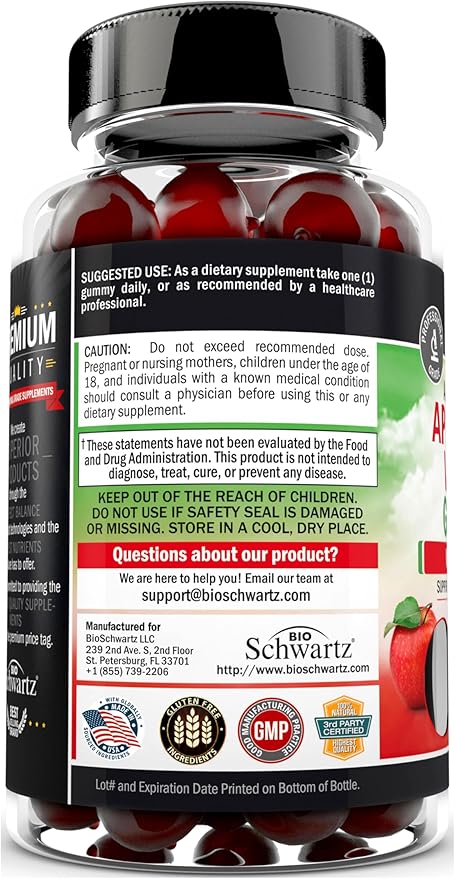 - * Supports healthy weight management: BioSchwartz advanced formula apple cider vinegar gummies with B12 supports healthy weight loss by acting as an appetite suppressant, helping you burn more fat and calories