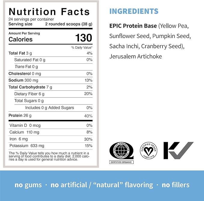 - COMPLETE PLANT PROTEIN - 26 grams per serving of complete vegan protein from five sources including Yellow Pea, Pumpkin Seed, Sunflower Seed, Sacha Inchi and Cranberry Seed.