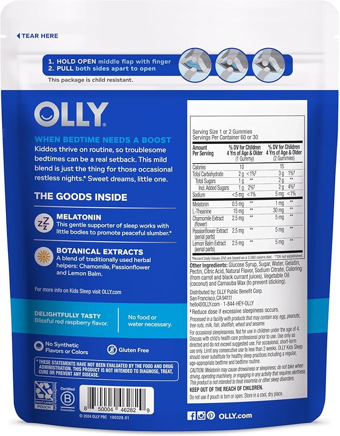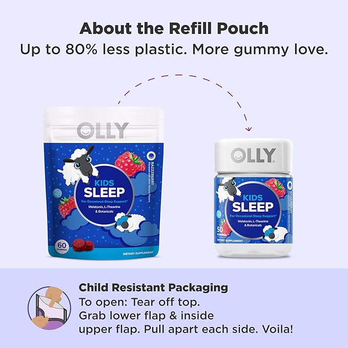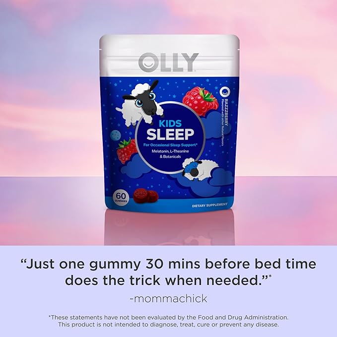 - OLLY KIDS SLEEP GUMMIES: Kiddos thrive on routine so troublesome bedtimes can be a real setback. This mild blend for sleep support is just the thing for those occasional restless nights. Sweet dreams little one