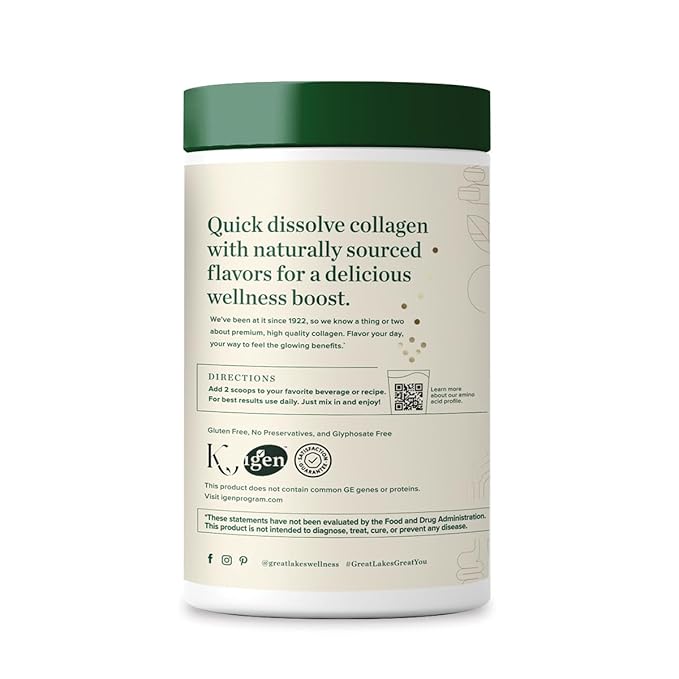 Great Lakes Wellness Collagen Peptides Powder for Skin, Hair, Nails, Joints & Digestion - Vanilla Flavored - Quick Dissolve Hydrolyzed, Non-GMO, Kosher - 10 oz - Packaging May Vary