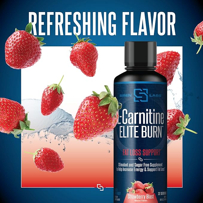 Siren Labs L-Carnitine Elite Burn Liquid Keto Fat Burner and Metabolism Activator - Fat Loss Support Keto Friendly Weight Loss Increase Energy - Stimulant Free - Strawberry Blast 3000mg (32 Servings)