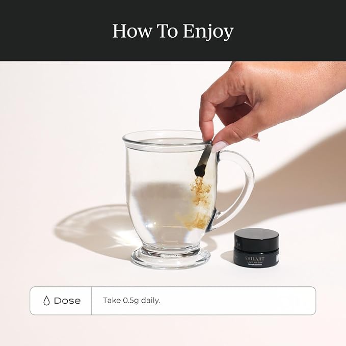 - HOW TO ENJOY: Can be taken daily, in the morning or at night. Using the small scooper, measure out your desired dose of Shilajit resin. Place into a cup of warm water, tea or coffee to dissolve as a healing elixir. Store: Keep in a cool, dark place or refrigerate after opening. Do not freeze.