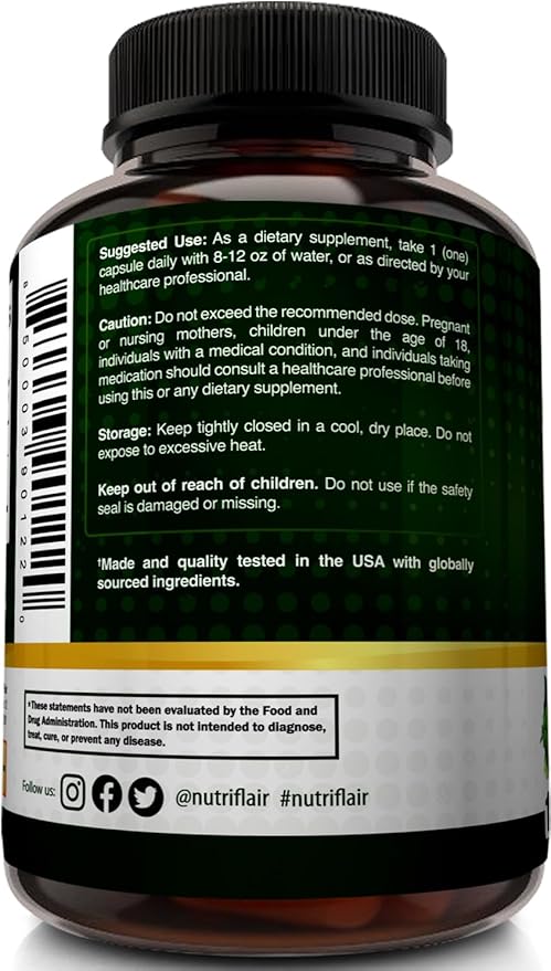 - ✔️ Made in USA & Third Party Tested: All NutriFlair Products are manufactured in the USA, in a duly Registered, Approved, and Inspected State-of-the-art Facility, with Strict Adherence to Good Manufacturing Practices (GMP). They are also 3rd Party Tested for Quality, Purity, and Potency. This includes all our Best Quality capsules, tablets, pills, supplements, vitamins, multivitamins, vegan and natural foods, powders, oils, and extracts for men, women, children, and seniors