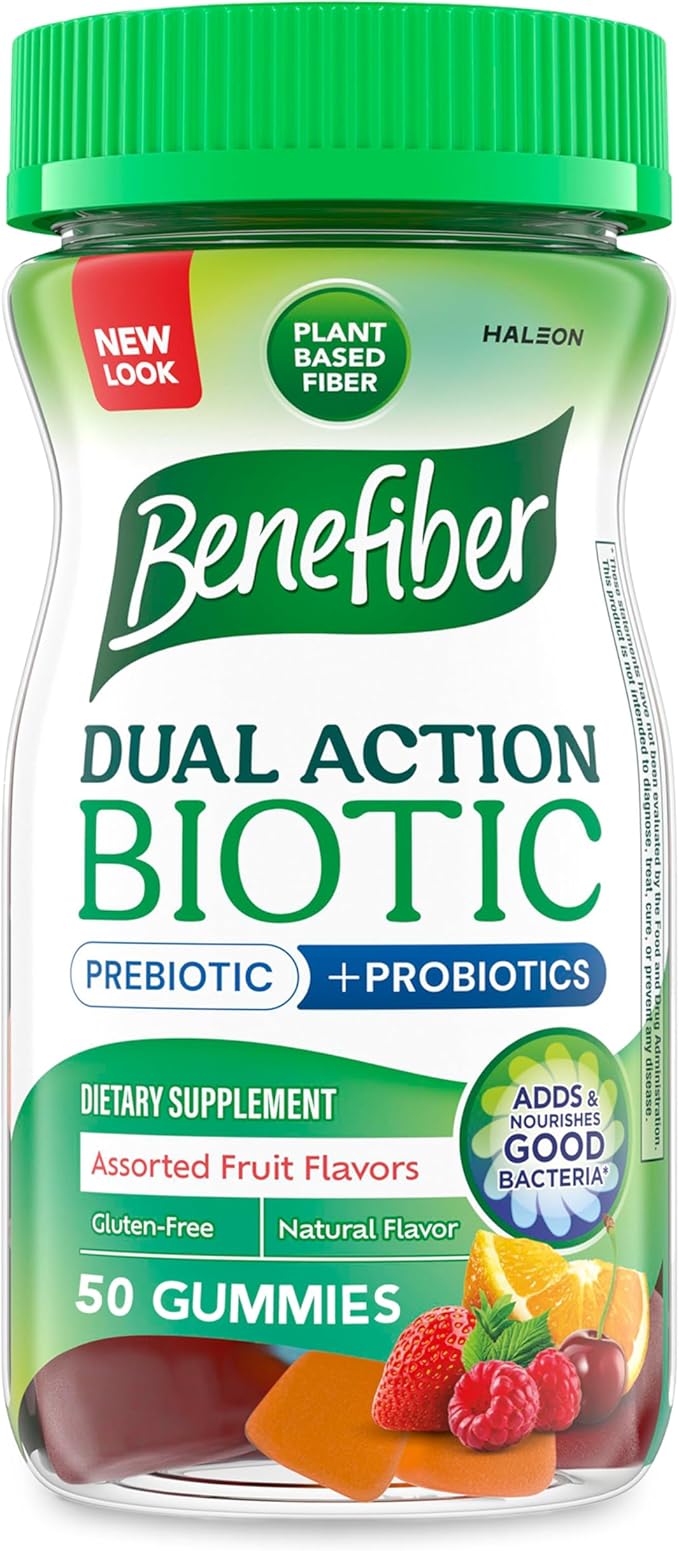 Benefiber Prebiotic Fiber Supplement Gummies with Probiotics for Digestive Health, Assorted Fruit Flavors - 50 Count