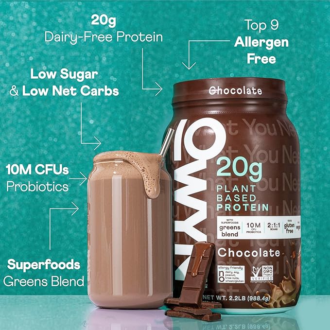 OWYN Only What You Need Vegan Protein Powder, 20g Plant Based Protein, Probiotics, Superfoods Greens, Pea, Chia Seeds, Pumpkin Seed Blend (Chocolate, 2.2 LB)
