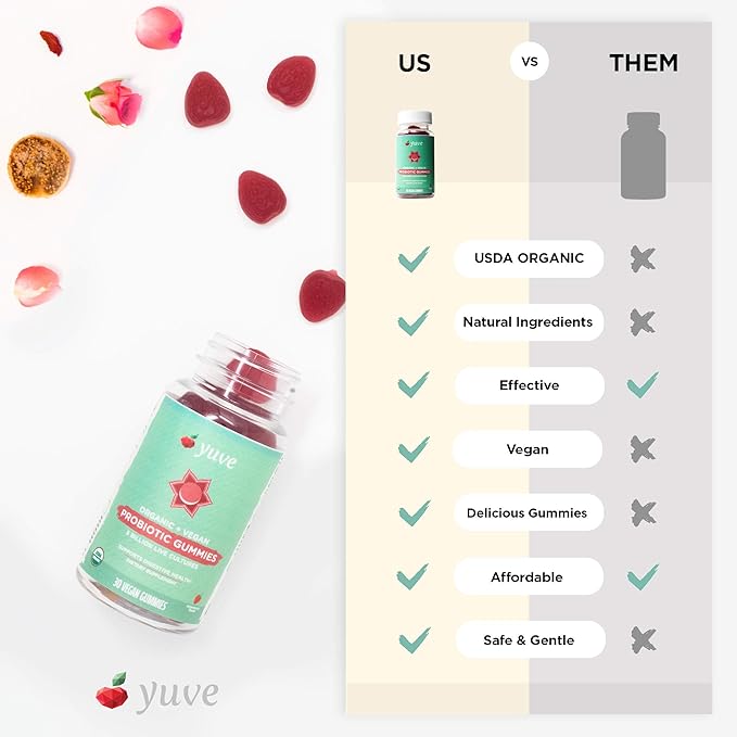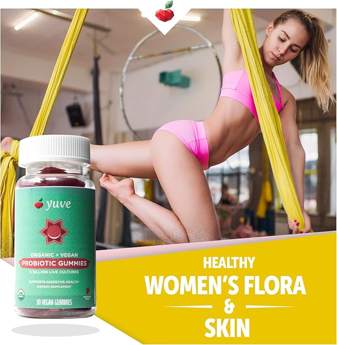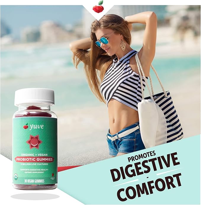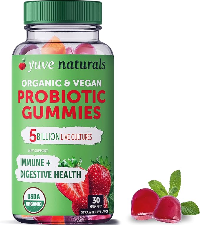 Yuve Vegan USDA Organic Probiotic Gummies - 5 Billion CFU - Promotes Digestive Health & Immunity - Helps with Constipation, Bloating, Detox, Leaky Gut & Gas Relief - Natural, Non-GMO, Gluten-Free 30ct