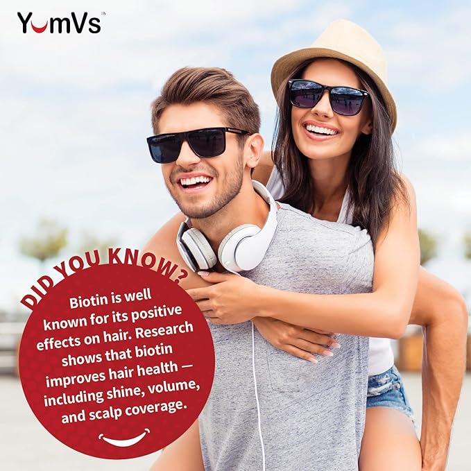 YUM-V'S High Potency Biotin Gummies by YumVs | Daily Dietary Supplement for Adults and Kids | Biotin 10000 mcg | Natural Raspberry Flavor Jellies, 100-Count | Vegetarian, Non-GMO, Kosher