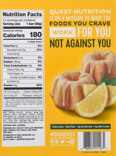 - FIBER IS YOUR FRIEND: The Quest Lemon Cake Protein Bars have 13g of fiber to provide your body with a more complete macro profile.