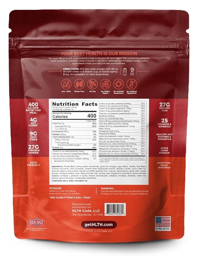 HLTH Code Complete Meal Replacement Shake - Healthiest Meal Replacement = Healthiest You | Keto Friendly | High Protein | Low Carb | Collagen | Gluten Free | Chocolate Macadamia (15 servings)