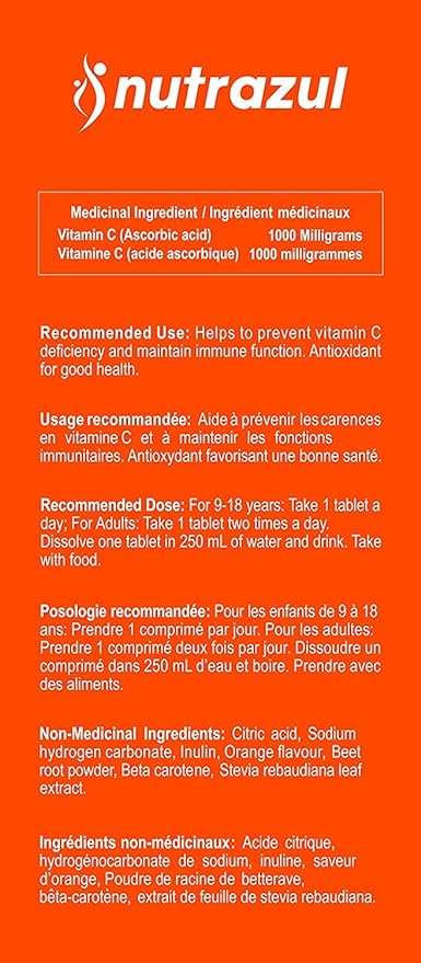 - HOW NUTRAZUL BENEFITS YOU: Nutrazul Effervescent Vitamin C Hydration Drink Tablets containing 1000 mg of Vitamin C to support immune function. Vitamin C provides powerful antioxidant protection for good health.