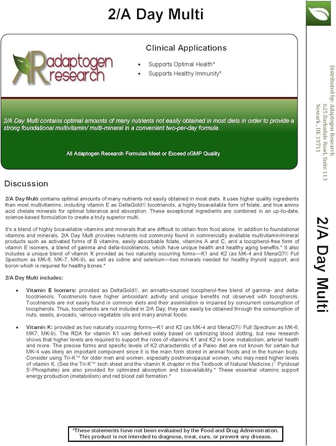 - 2/A Day Multi is a blend of highly bioavailable vitamins and minerals that are difficult to obtain from food alone.