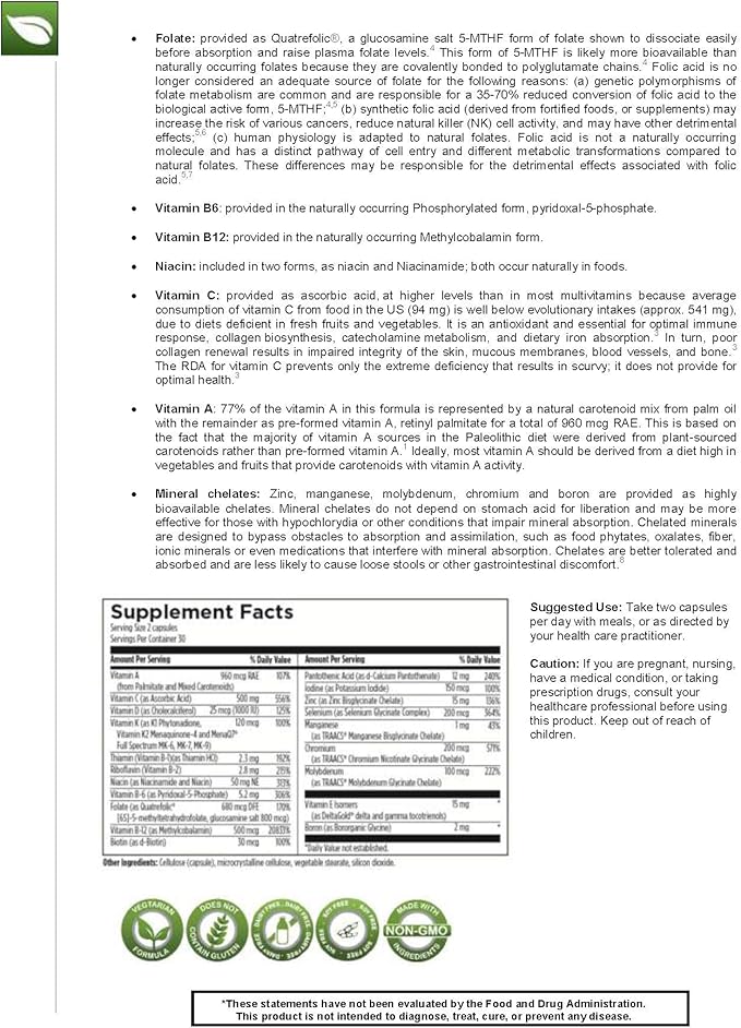 - Includes vitamin E as high gamma mixed-tocopherols and true amino acid chelate minerals.*