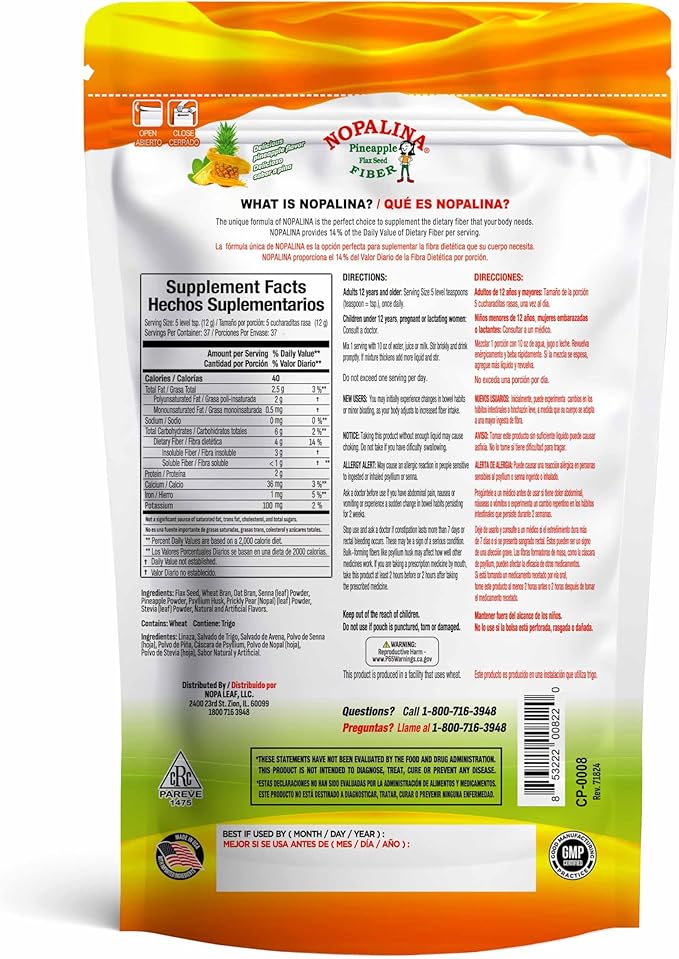 Nopalina Colon Detox Fiber (Flax Seed) - Pineapple Flavor (1LB)