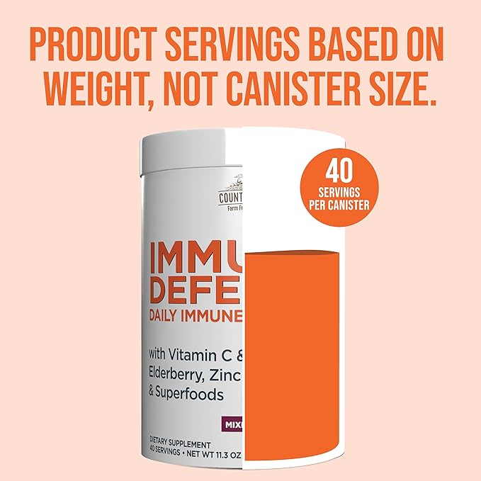 - 29 berries, herbs, mushrooms, greens & immune Superfoods: Country Farms Immune defense is a comprehensive formula that features nature's finest immunity boosting ingredients.