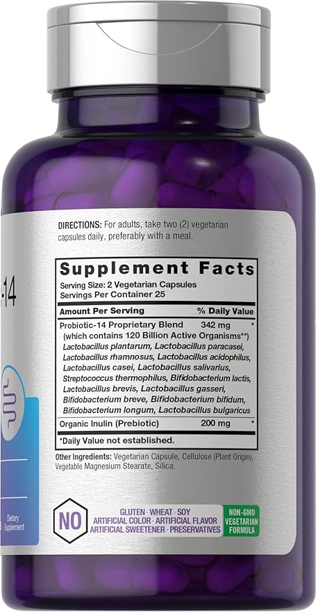 Horbäach Probiotics 120 Billion CFU | 14 Strains with Prebiotics | for Women & Men | 50 Capsules | Vegetarian, Non-GMO & Gluten Free Supplement