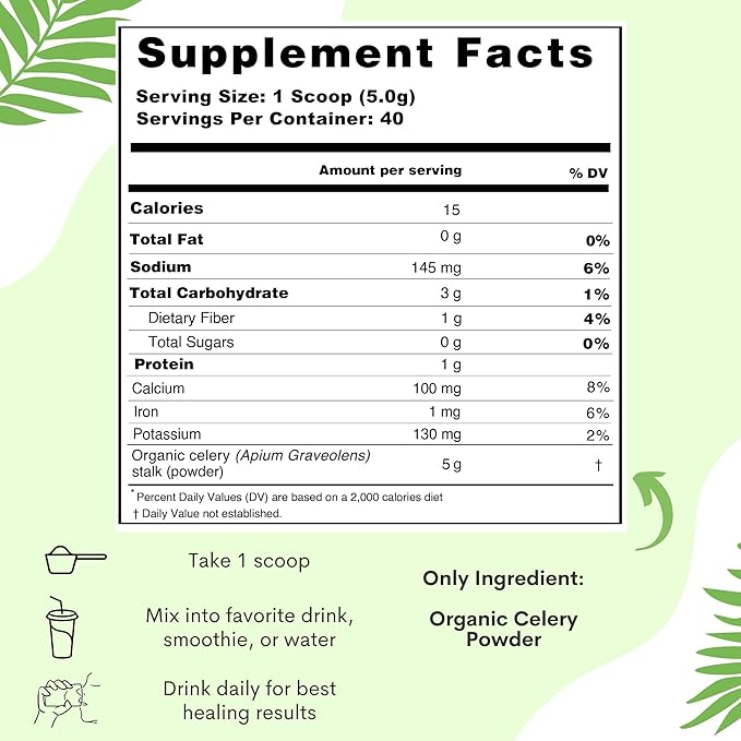Organic Celery Juice Powder (40 Servings) Supports Gut Health, Detox Juice Cleanse, Boost Energy Levels & Immune System, Green Juice Powder, Powdered Greens, Colon & Body Detox Cleanse for Women Men