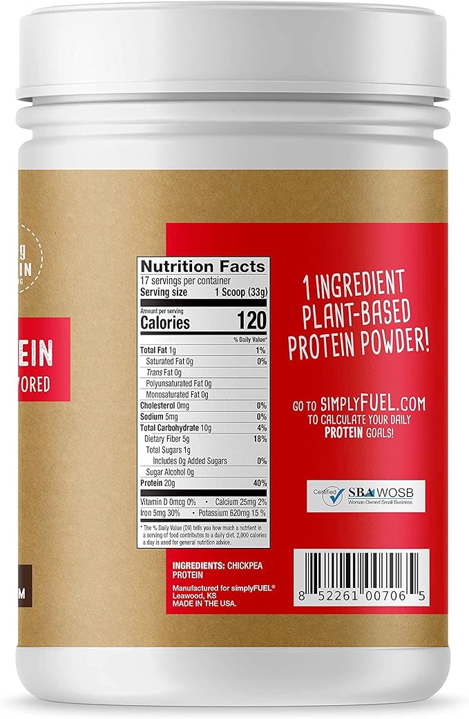 Plant Based Protein Powder - Chickpea Protein - 20g No Whey Protein Powder Unflavored - High Fiber - Unsweetened - No Stevia - Nothing Artificial - 1.25 pounds