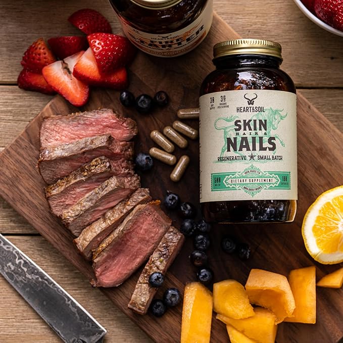 - Complete Skin, Hair and Nail Support - Our Hair Skin and Nails Vitamin is rich in grass-fed & finished cartilage, liver, and bone marrow. It provides strategic nourishment for radiant skin, strong nails, and healthy hair.