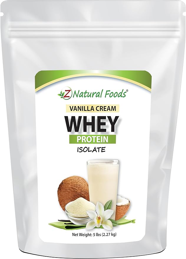 Z Natural Foods Vanilla Cream Whey Protein Isolate, Nutrition-Rich, Flavorful Protein Powder for Heart Health and Immunity, Great in Tea, Coffee, Smoothie, Non-GMO, Gluten-Free, Kosher, 5 lbs