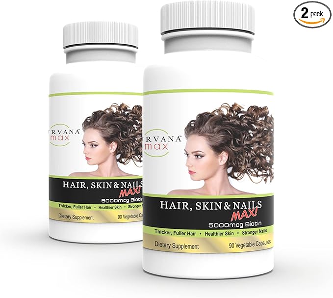 Wellgenix Purvana Max Hair, Skin, & Nails Vitamin Capsules, Double Strength Biotin 5000MCG, Fo-Ti Root, VIT A & B, Folic Acid (2 Pack)