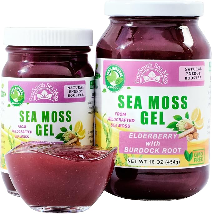 Wildcrafted Irish Sea Moss Gel | Made in USA | Rich in Vitamins & Minerals | Sea Moss Gel Raw | Nutritional Supplement | Elderberry (16 oz)