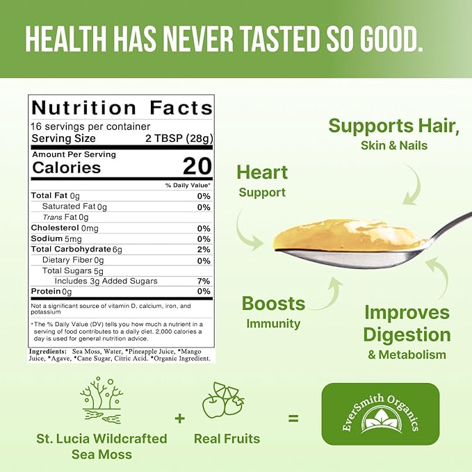 - 🥭WILDCRAFTED SEA MOSS GEL: Our Sea Moss Gel is Made in the USA from wildcrafted sea moss, sustainably harvested from the St. Lucia ocean. Packed with essential vitamins and minerals like iodine, iron, and calcium, Irish sea moss promotes overall health and well-being.