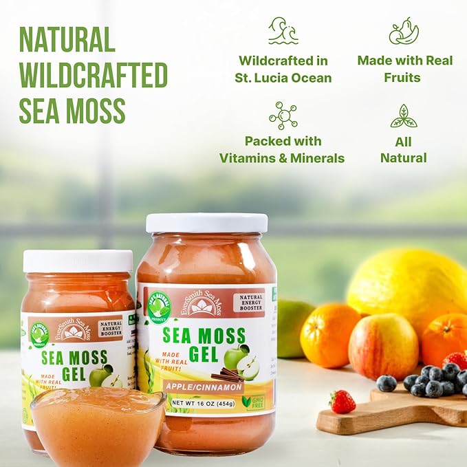 - 🥭WILDCRAFTED SEA MOSS GEL: Our Sea Moss Gel is Made in the USA from wildcrafted sea moss, sustainably harvested from the St. Lucia ocean. Packed with essential vitamins and minerals like iodine, iron, and calcium, Irish sea moss promotes overall health and well-being.