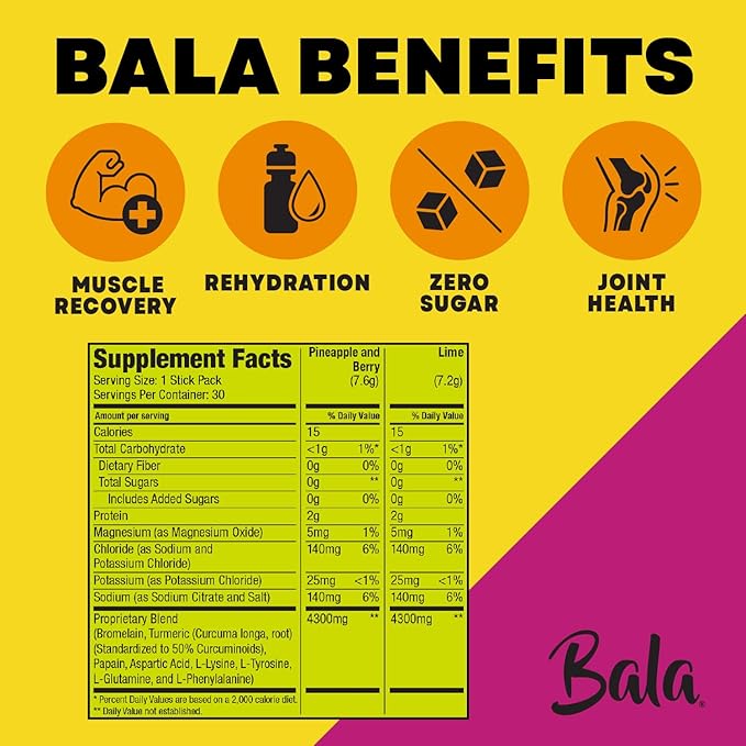 - ZERO SUGAR - Bala is sugar-free turmeric electrolytes powder with only 15 calories because we are focused on providing a healthy option for daily health and wellness; sport, dietary boost electrolytes powder packet with Pineapple, Berry, and Lime Flavors.