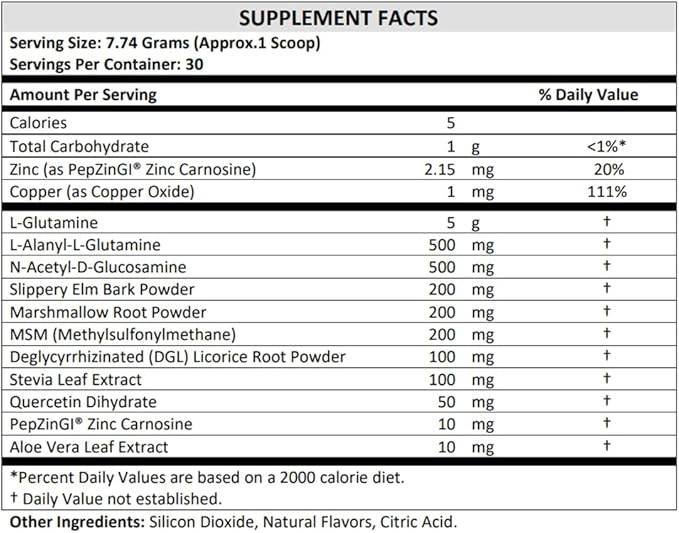 - SUPPORTS DIGESTIVE HEALTH: Terra Origin Healthy Gut Powder is designed to alleviate stomach discomfort and improve digestion. Featuring PepZinGI (Zinc Carnosine), L-Glutamine, Glucosamine, and herbal extracts like Slippery Elm Bark and Marshmallow Root, it soothes the digestive tract and promotes stomach comfort by reducing bloating and cramping.