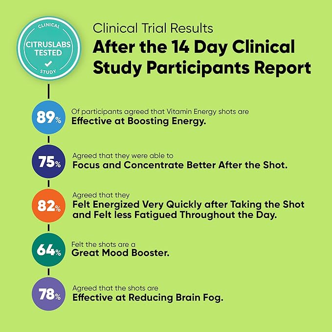 - Fast acting energy: Each tasty Vitamin Energy shot goes down in a quick sip and is instantly absorbed through your body, making it a fast-acting energizer