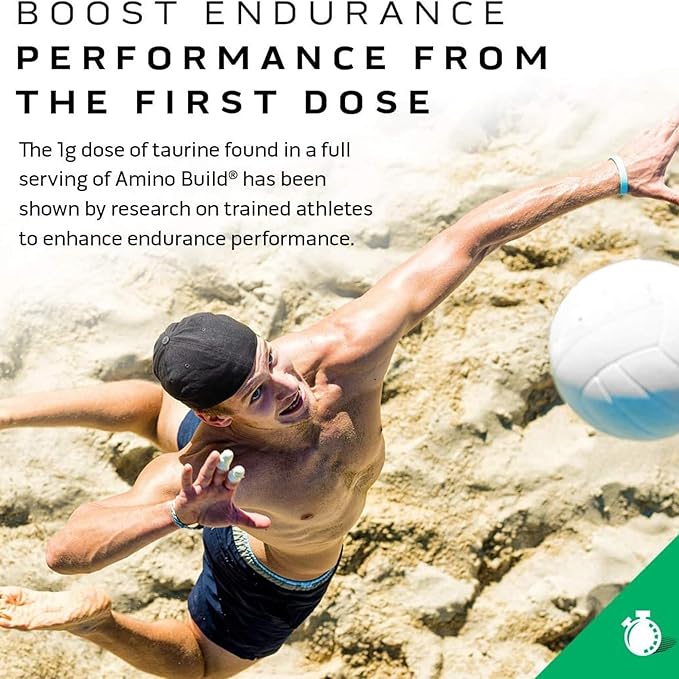 - BOOST ENDURANCE – The 1g dose of taurine found in a scoop of Amino Build has been shown by research on trained athletes to enhance endurance performance. Give your muscles the fuel they need to perform with Amino Build