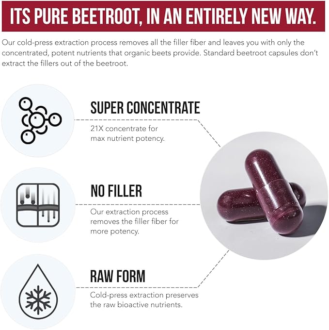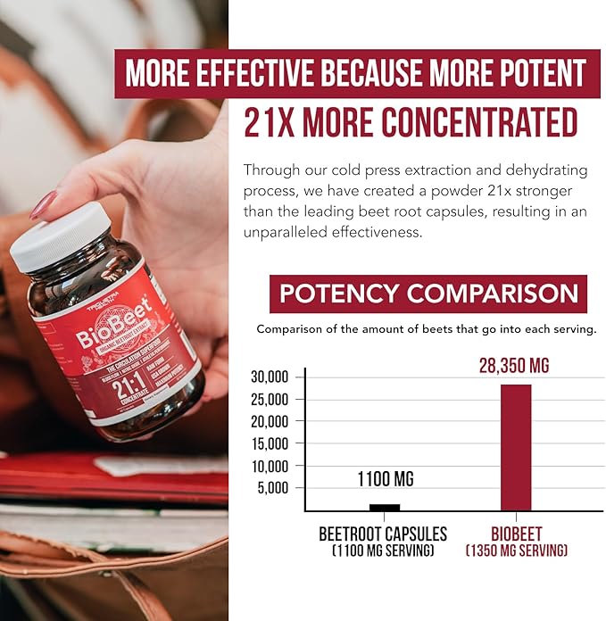 - HIGHEST CONCENTRATION - 21:1 CONCENTRATE: Each 1350 mg serving of BioBeet is derived from 28,350 mg of organic beet. It has a 21 times higher Beet concentration than any standard beet root capsules which are 1:1 concentrations.*