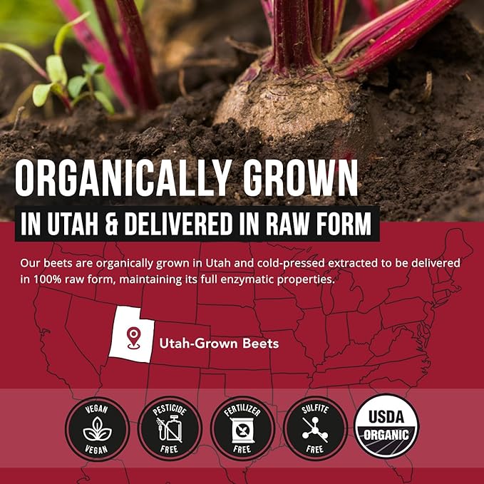 - DERIVED FROM ORGANIC US GROWN BEETS: BioBeet is derived from 100% organically grown beetroot. All of our Beets are organically grown in the US.